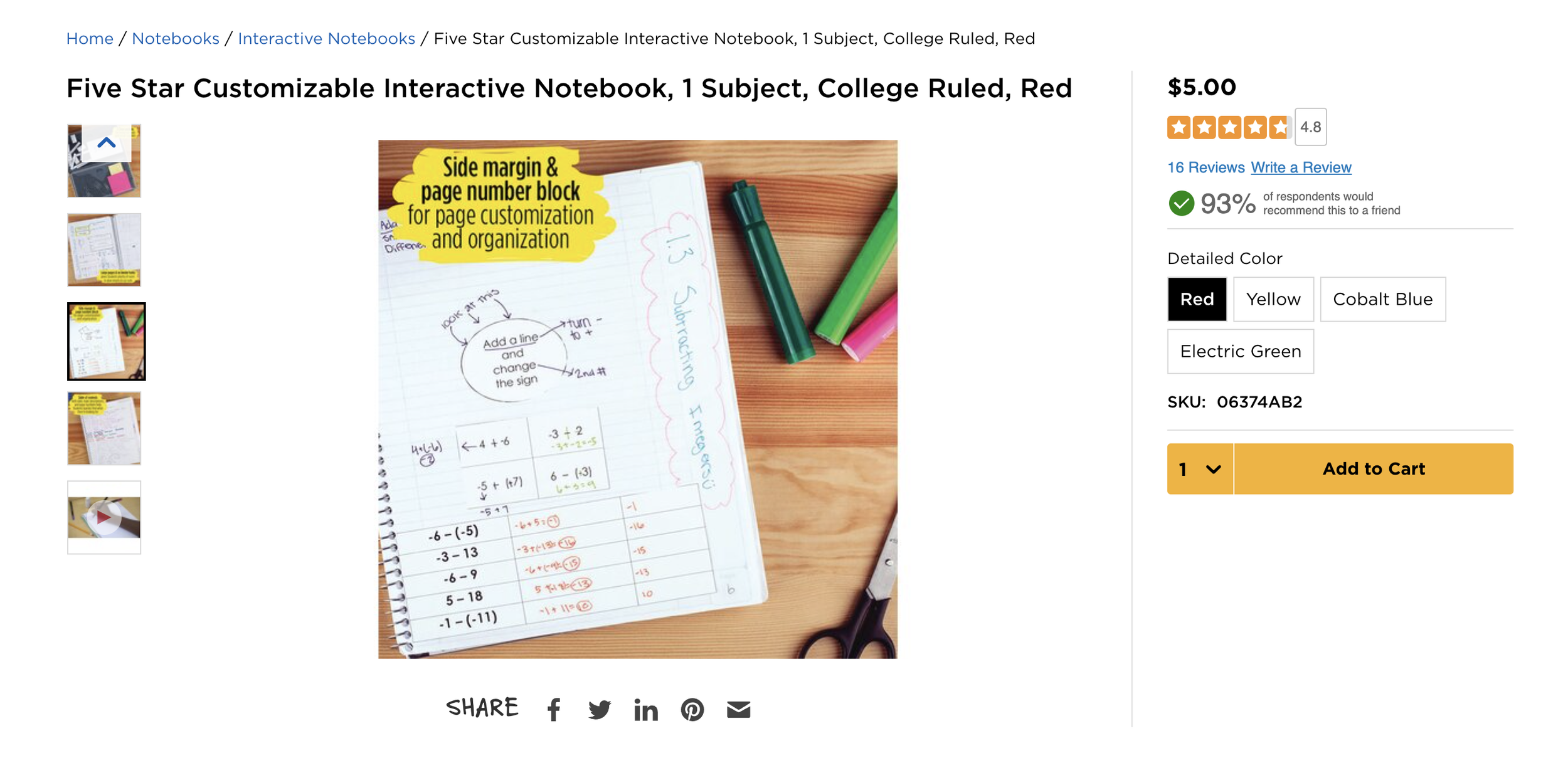 Five Star - a premier provider for notebooks, binders, and other school supplies - highlights product features with images in real-world settings.