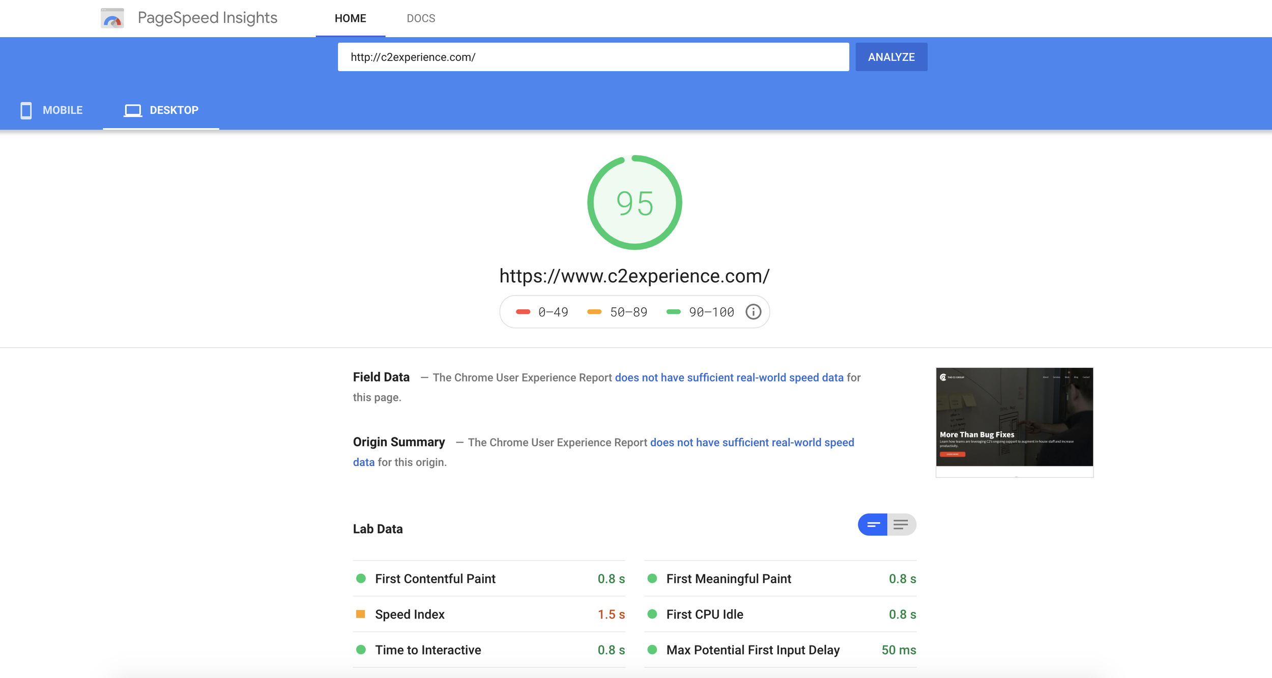 Google’s PageSpeed Insights tool offers a free, quick analysis of a site’s mobile and desktop performance on a 0 to 100 scale with color-coded maps to indicate performance score ranges: red (slow), orange (average), and green (fast).